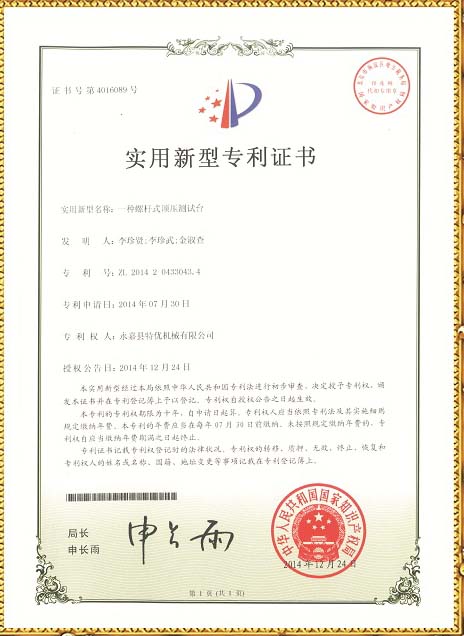 螺桿式測試臺技術(shù)專利 | 頂壓式試驗臺專利
