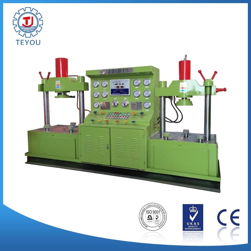 壓爪夾緊力所需的高壓液壓力,由設(shè)備本身的液壓系統(tǒng)增壓而成,試驗介質(zhì)可采用水、煤油或空氣。液態(tài)介質(zhì)可循環(huán)使用。試驗介質(zhì)的試驗壓力經(jīng)增壓達到設(shè)定的試驗壓力時,增壓自動停止,并自動進入設(shè)定的保壓計時,保壓計時結(jié)束后,系統(tǒng)自動發(fā)出聲光報警,以示測試結(jié)束。