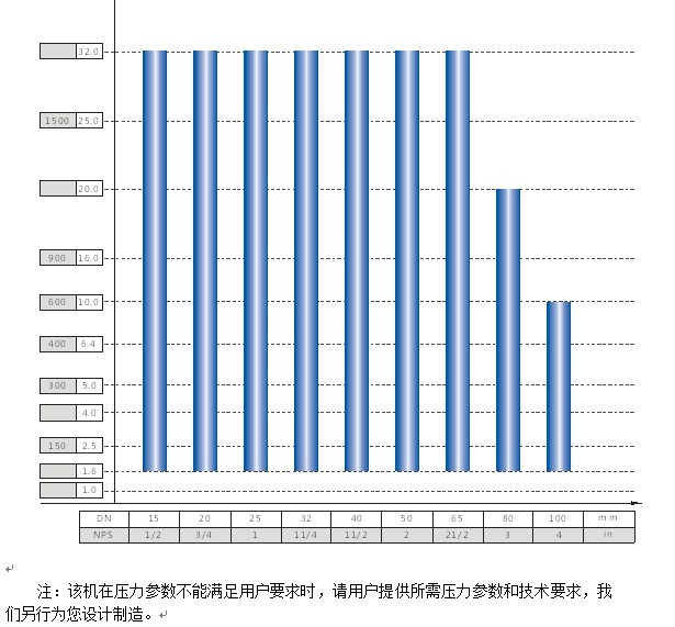 八、JWZ型測(cè)試口徑壓力范圍圖表